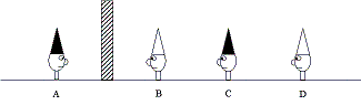 Fishermen A and B are in the same situation - they have no information to help them determine their hat colour so they can't answer. C and D realise this.